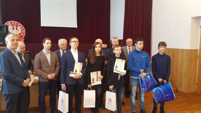 Nagrody dla najlepszej trójki wręczyli: Michał Marciniak w imieniu posła Krzysztofa Hetmana oraz dyrektor Leszek Bober reprezentujący naszą szkołę jako organizatora konkursu. Najlepsi uczniowie z poszczególnych powiatów otrzymali cenne nagrody rzeczowe z rąk swoich starostów lub ich przedstawicieli: Jana Komana, reprezentującego Starostę Biłgorajskiego, Stanisława Sitarza – wiceprzewodniczącego hrubieszowskiej Rady Powiatu, Jerzego Wereszczaka – Wicestarosty Tomaszowskiego i Henryka Mateja – starosty Zamojskiego.