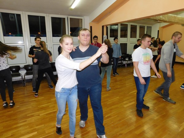Podczas ferii w naszej szkole odbył się kurs tańca prowadzony przez instruktorów: panią Gabrielę Kołodziej i pana Petara Trajcheskiego. Grupa 26 uczniów z klasy II a i II c odkrywała kolejne kombinacje kroków i figur, które czasami sprawiały więcej trudności niż matematyczne zagadnienia. Pomysłodawcą kursu był wychowawca klasy II a, pan Wiesław Wawryszczuk, który uważnie obserwował nasze postępy i utrwalał je na zdjęciach, umieszczonych poniżej. Przekonajcie się sami ile radości może płynąć z tańca!
