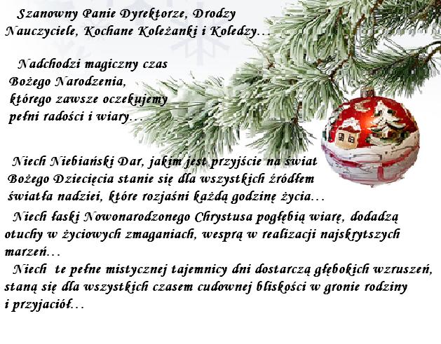 Najmilszym Koleżankom i Kolegom – wymarzonych, najlepszych wyników z każdego przedmiotu, miłej atmosfery w szkole, niezapomnianych przyjaźni; uczniom klas III – świetnie zdanej matury i udanej rekrutacji na wyższe uczelnie…