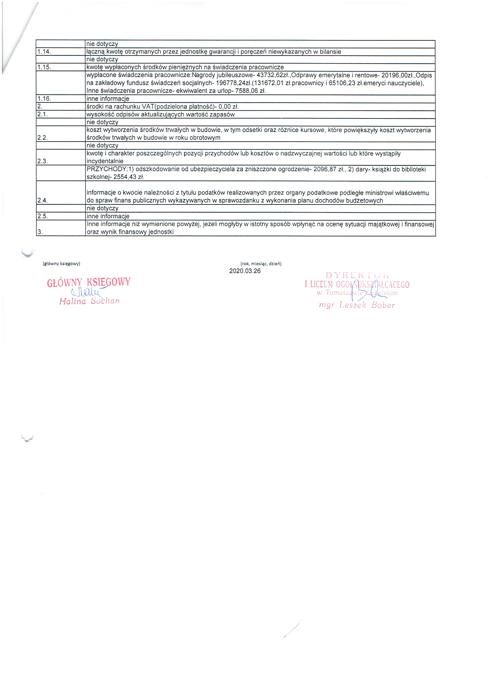 Załącznik 5: Dane do informacji dodatkowej