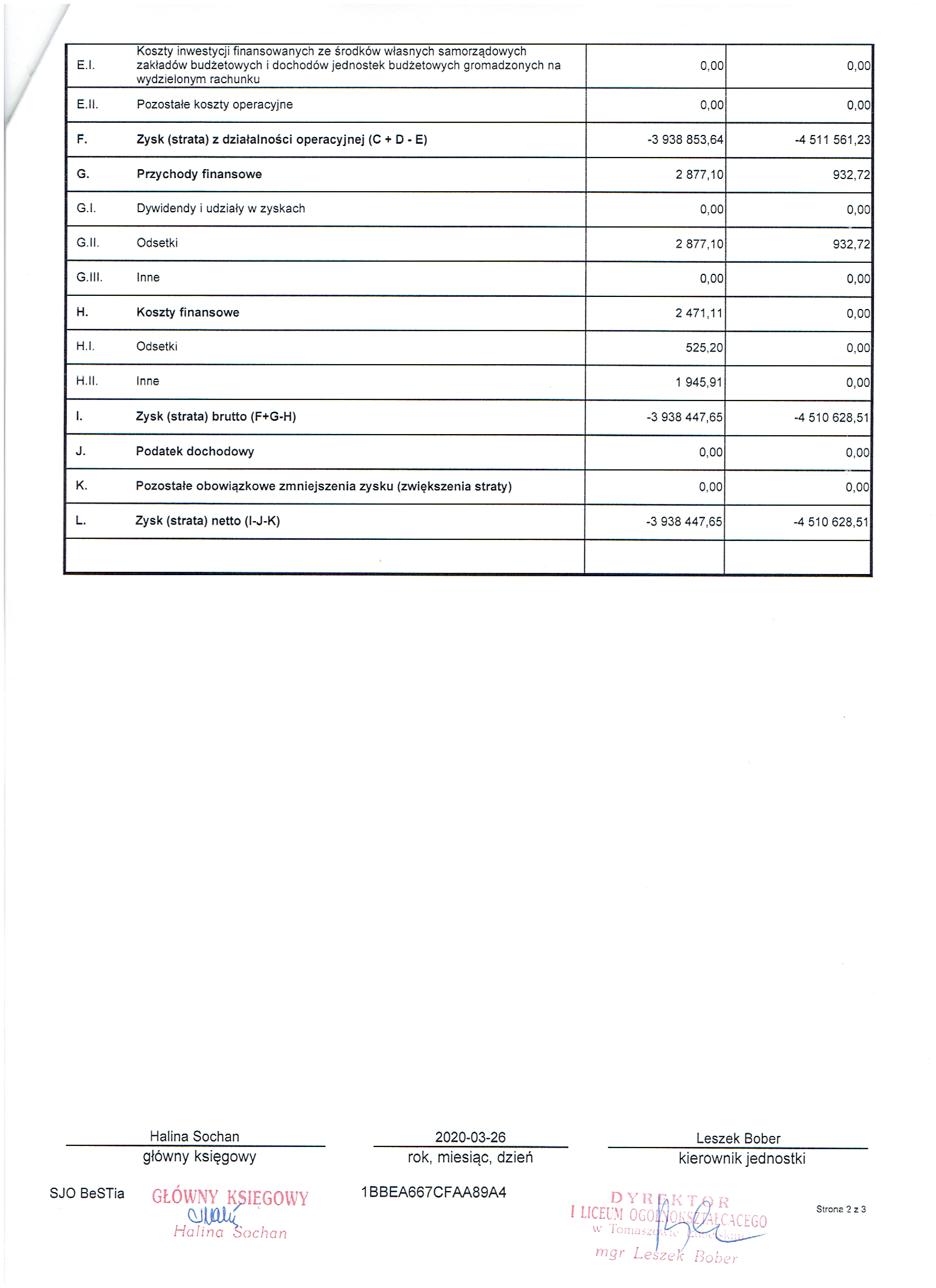 Załącznik 2: Rachunek zysków i strat (wariant porównawczy)